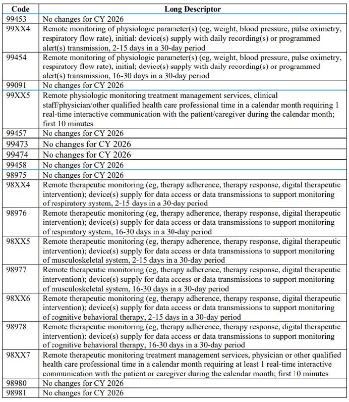 Appendix B: Proposed CY 2026 Remote Monitoring Codes – p. 232