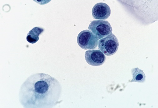 Figure 6: Example of positive urine cytology - high nucleus to cytoplasm ratio and dense nucleoli suggest urothelial cancer. Source: https://www.oncozine.com/study-shows-urine-based-liquid-biopsy-outperforms-urine-cytology-in-detecting-bladder-cancer/