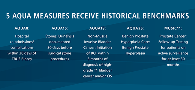 For the first time, five urology-specific measures offered by the AQUA Registry received historical benchmark status from CMS. These measures include AQUA8, AQUA15, AQUA18, AQUA26 and MUSIC11 and could gain the eligible professional up to 10 points each in the 2020 MIPS reporting year.