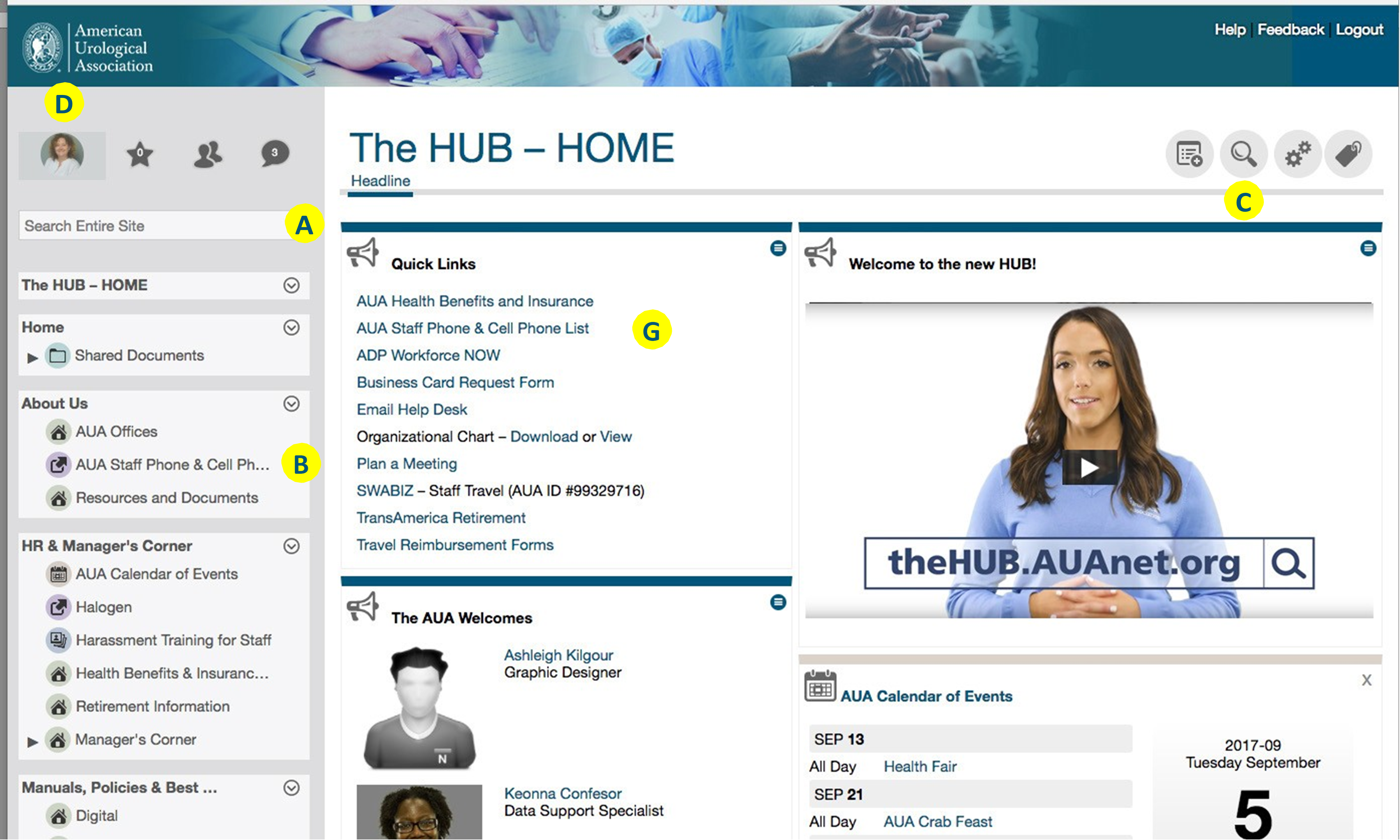 The employee intranet the HUB is a repository for information, forms, and documents to assist new employees in their daily duties. It contains information that is relevant to all AUA staff and cannot be located elsewhere.